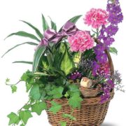 This lively mix of African violet, cyclamen and kalanchoe plants really packs a lot of beauty into its petite wicker basket. Great for any occasion.