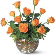 A bouquet of berry-toned blossoms is arranged in a plum glass cube in this chic floral arrangement that will catch someone’s fancy. Send one today to a tried-and-true friend, and they??ll feel wonderfully fashionable.